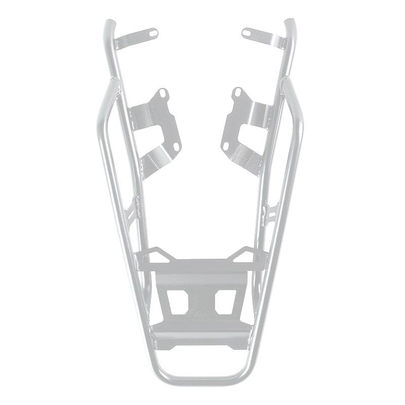 It completes the rear and is equipped with comfortable grab handles for the passenger. Sturdy and practical, it can house rigid plastic or aluminum cases. Available with silver finish or treated with high resistance matt black powder coat. Also great for having more space when loading soft bags.