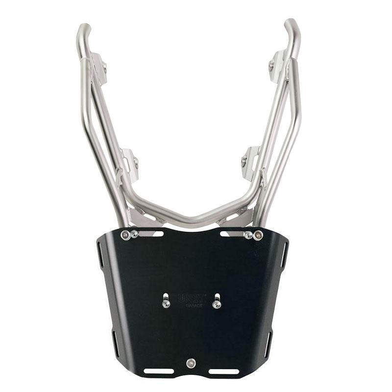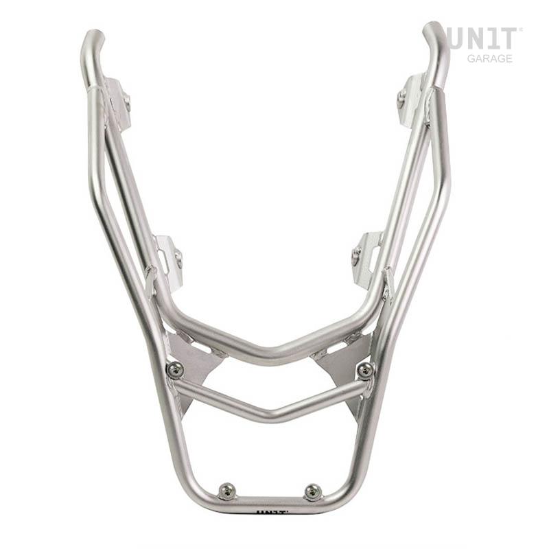 It completes the rear part and is equipped with comfortable handles for the passenger. Sturdy and practical, it can house both the plate code: U108 and the AL3 plate for the aluminum top case using the 4 fixings provided. Also excellent for having more loading surface for soft bags by mounting the plate Code: AL13 In this version it is proposed with a high resistance epoxy powder finish in matt black.