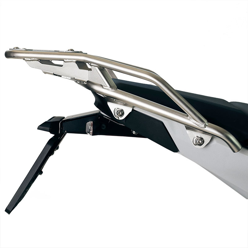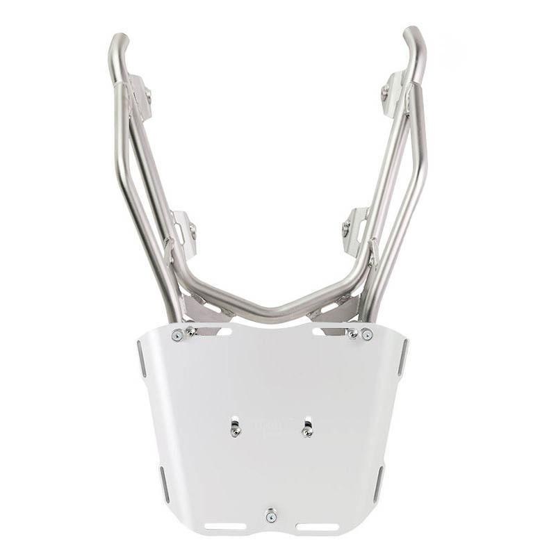 3. Reinforced inox luggage rack designed for fixing plates or top case (Silver colour)