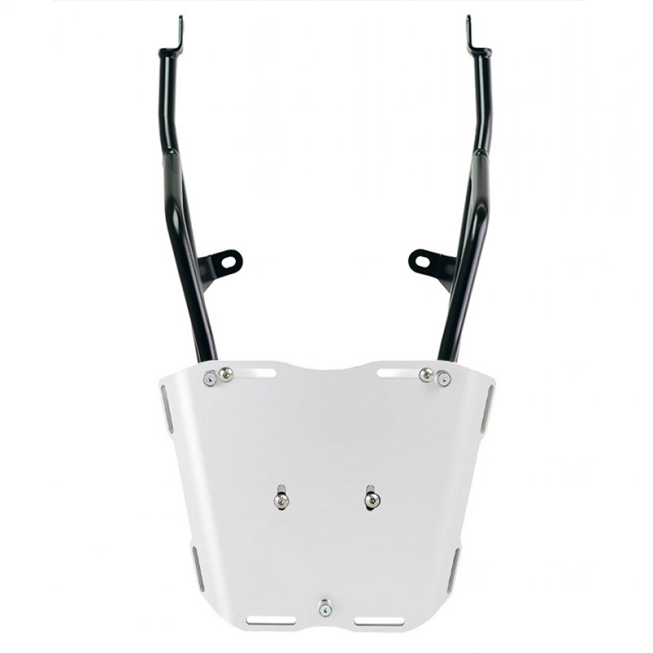 If you want to travel with your Royal Enfield Bear 650 with a hard top case or with significant luggage, this roof rack is the one for you! It completes the rear part and is equipped with comfortable handles for the passenger. Sturdy and practical, it can house both the code plate: U108 and the code plate: AL5 for the aluminum top case using the 4 provided fixings. Available with a high-resistance matt black epoxy powder finish. Also excellent for having more loading surface with soft bags.