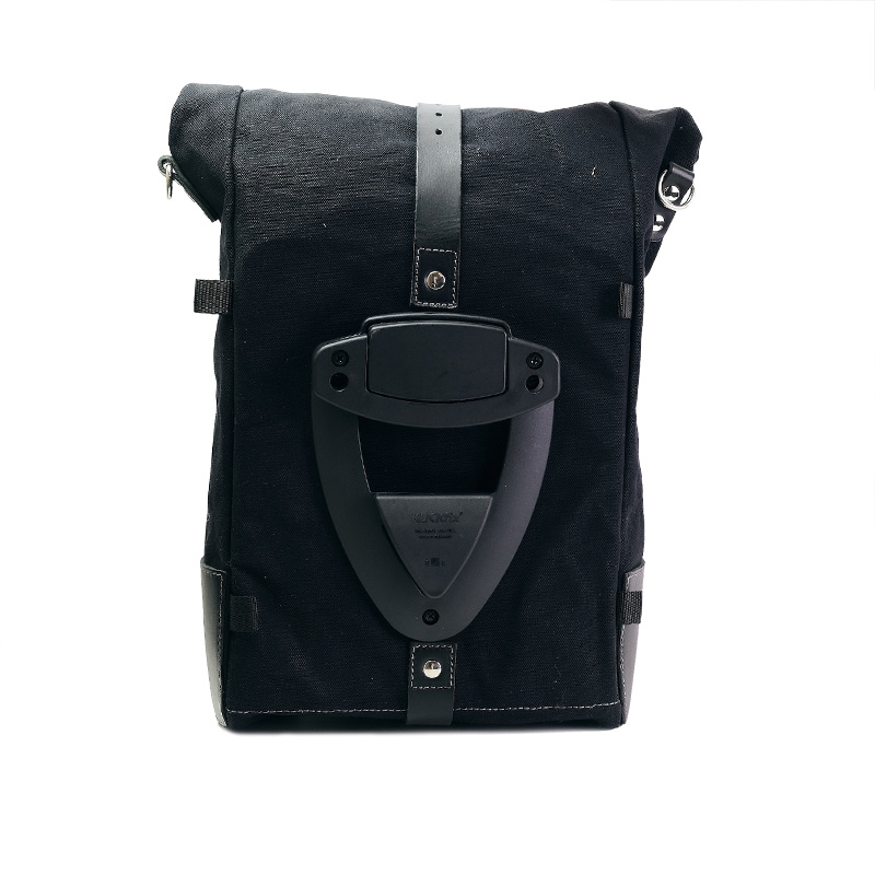 Carefully crafted with attention to detail and 3 mm leather trim, it is as simple and pure as the materials used to make it. It attaches quickly to our bag frame with the quick-release system already included and mounted on the back of the bag, which is equipped with a lock for securing it to the frame.