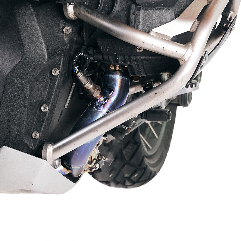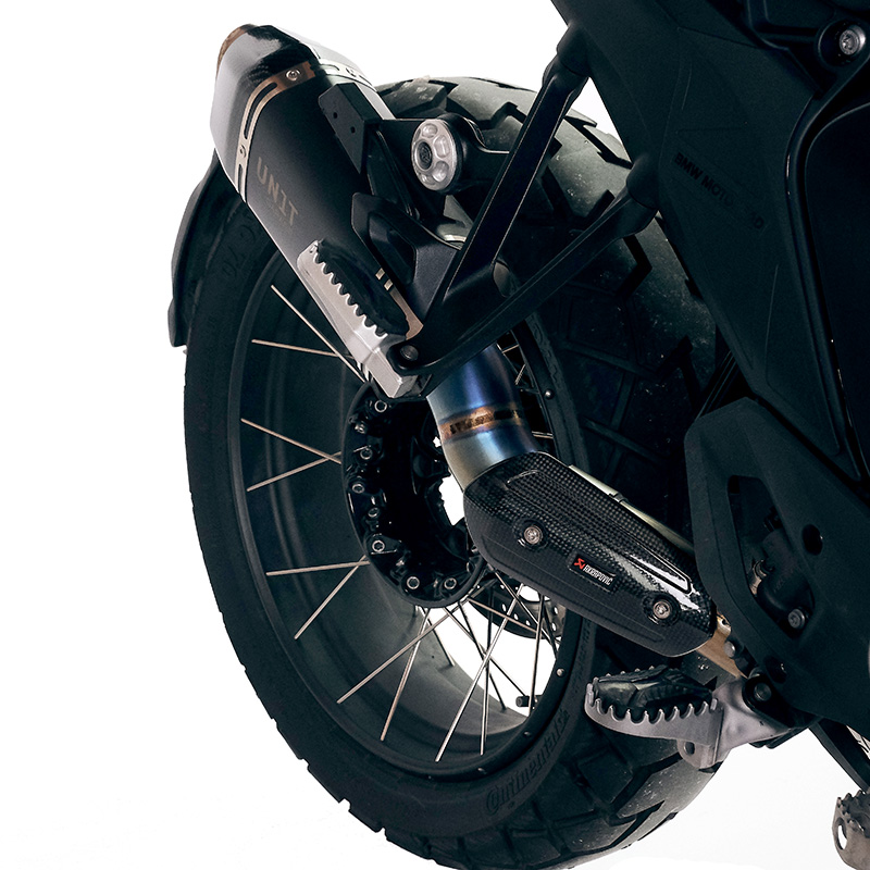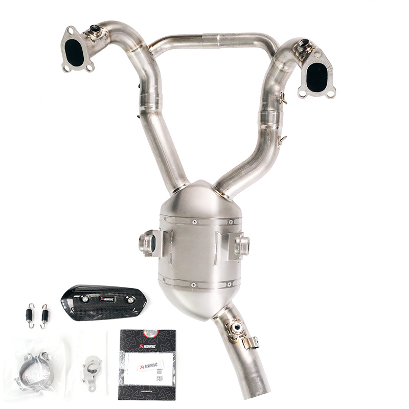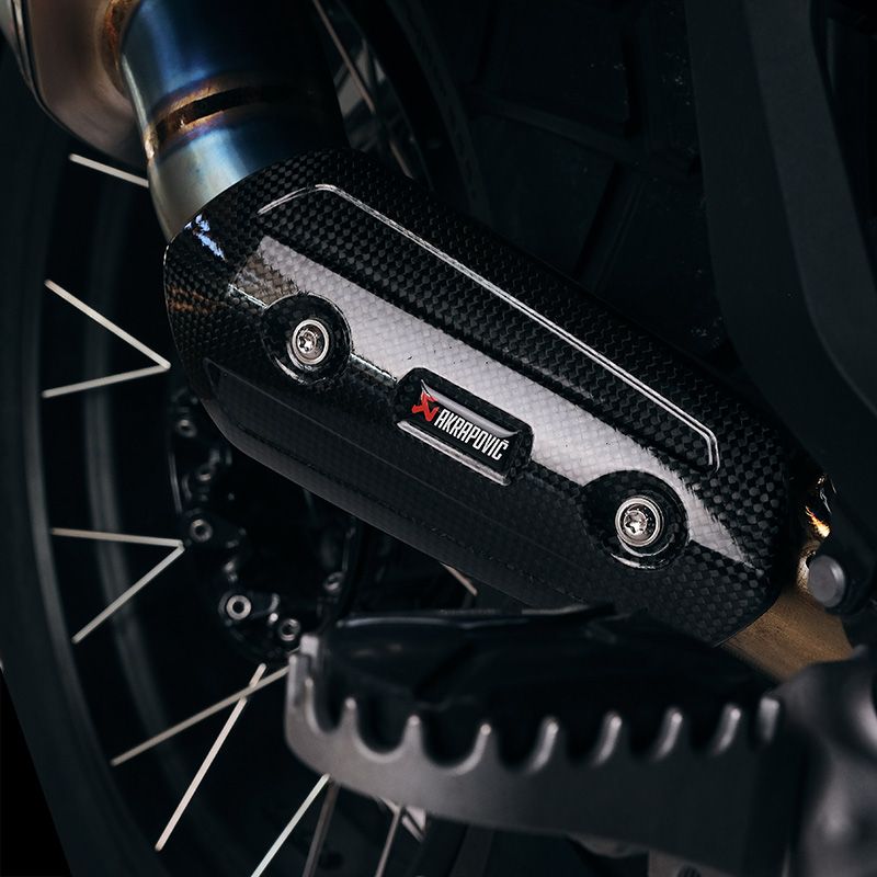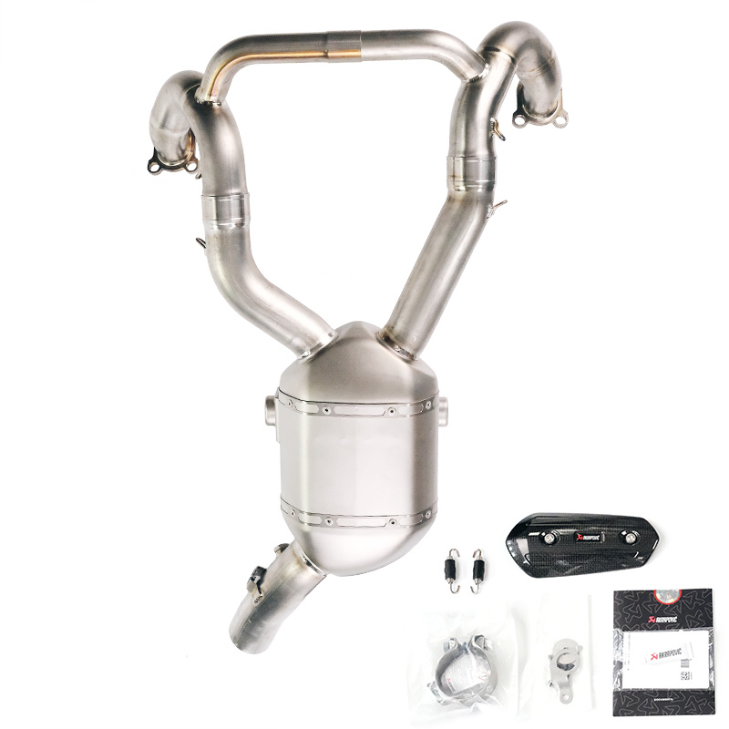 Akrapovic headpipe made of high quality Titanium with carbon fibre protection.