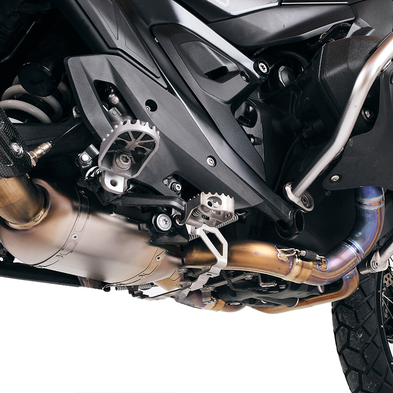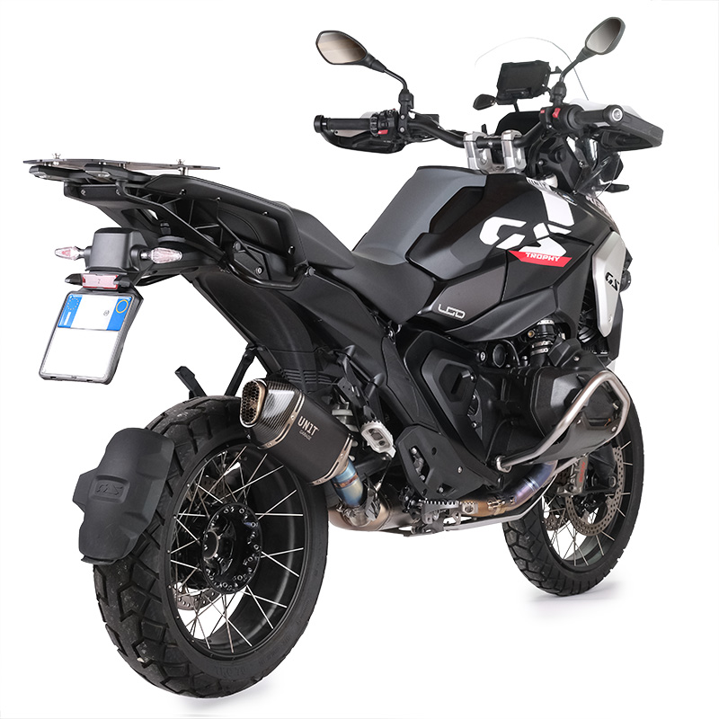 Not homologated for road use, it improves performance and reduces weight. Tubes with a bigger diameter than the standard stock system and removal of the catalytic converter allow for enhanced gas flow. The pre-muffler offers a unique sound experience, producing a deep racing tone from the boxer engine. This upgrade results in a 54.84% (3.4 kg) weight reduction compared to standard stock. It boosts power by 3.1 kW (4.2 hp) at 7,800 rpm and torque by 5.9 Nm at 3,000 rpm, as tested on the Akrapovič dyno against a BMW R1300GS equipped with a standard stock system. Installation is plug-and-play.