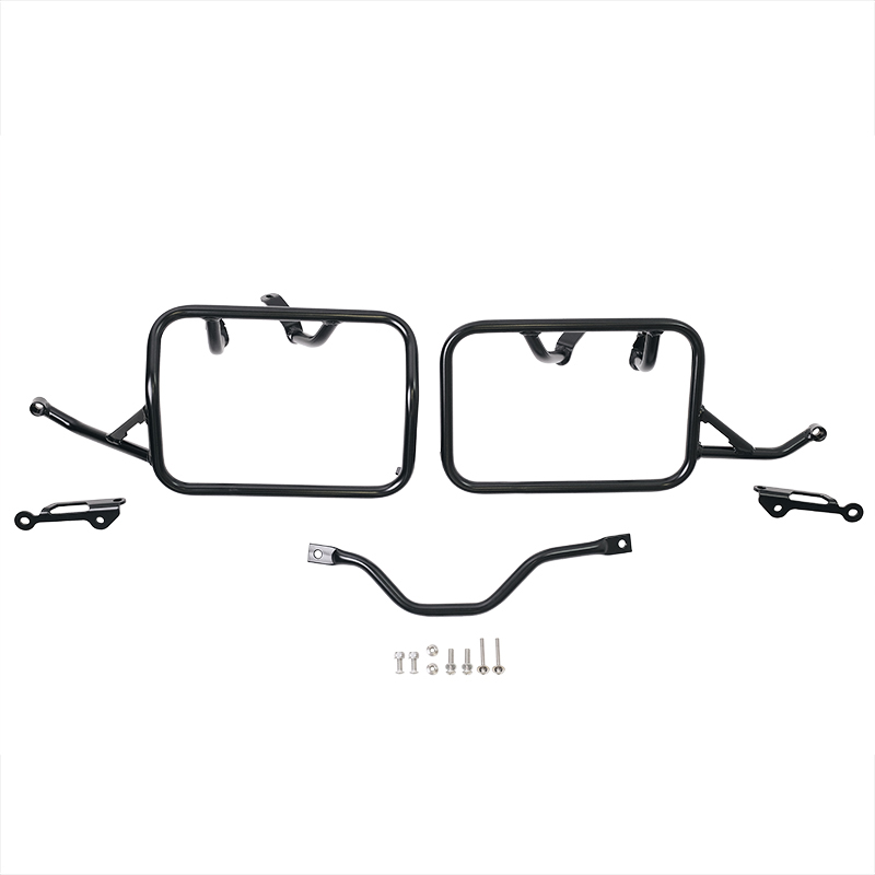 This complete set of frames made of stainless steel integrates perfectly with the rest of the bike. It is supplied complete with mounting kit and screws, no modifications to the motorbike are necessary. It can be mounted on the motorcycle in combination with our luggage racks (code: 5003) or the rear handle (code: 5004). They can be used comfortably with the passenger on board.