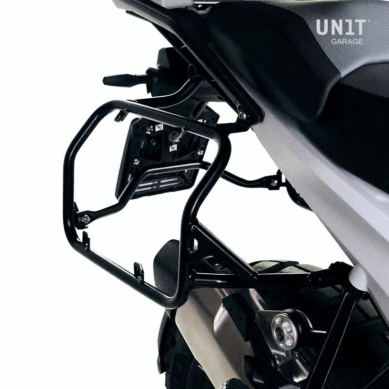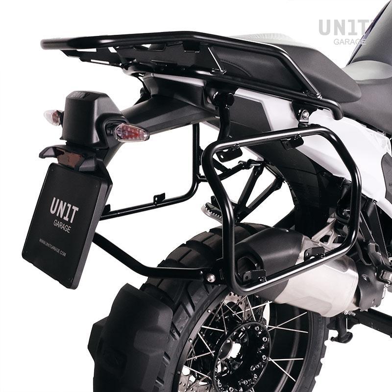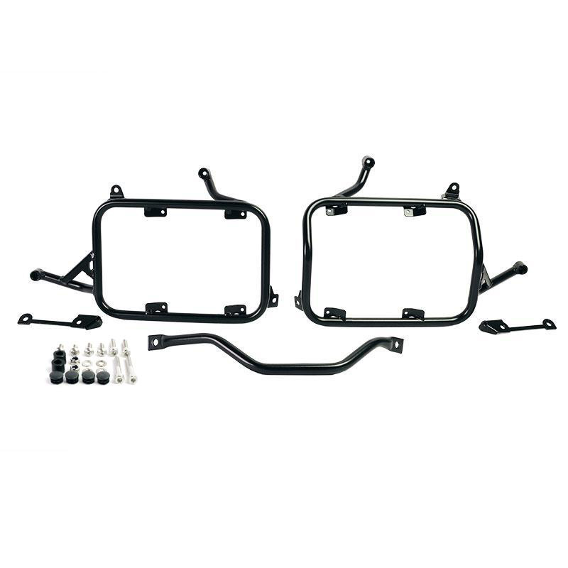 This complete set of frames made of stainless steel integrates perfectly with the rest of the bike. It is supplied complete with mounting kit and screws, no modifications to the motorbike are necessary. It can be mounted on the motorcycle in combination with our luggage racks (code: 4004) with original BMW accessories such as the luggage rack or the passenger handle.