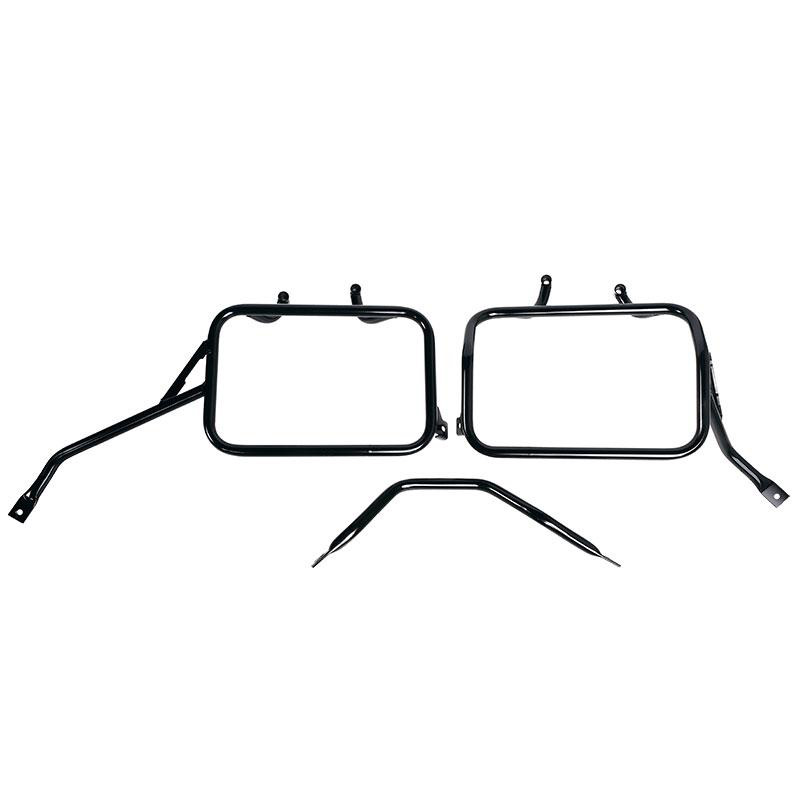 This complete set of frames made of stainless steel integrates perfectly with the rest of the bike. Comes complete with mounting kit and screws, no modifications required. It can be mounted on the motorbike in combination with our luggage racks (code: 4203) with original Triumph accessories such as the luggage rack or the passenger handle. They can be used comfortably with the passenger on board.