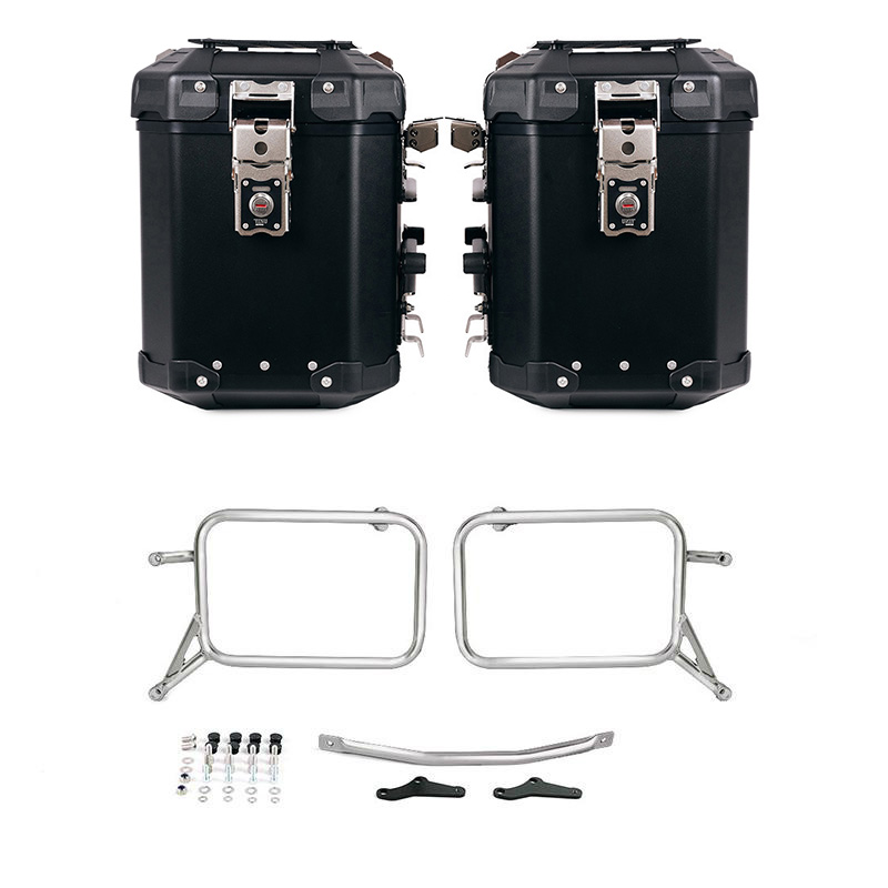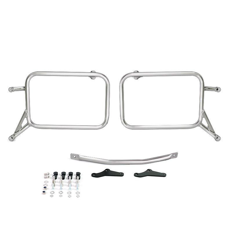 This complete set of frames made of stainless steel allows you to mount the aluminum cases on the R and GS models. They integrate perfectly with the rest of the bike. Ready to house our aluminum bags in different sizes. Comes complete with mounting kit and screws. On the GS model it is not necessary to replace the passenger footboards with those of the ADV model. They can be used comfortably with the passenger on board.
