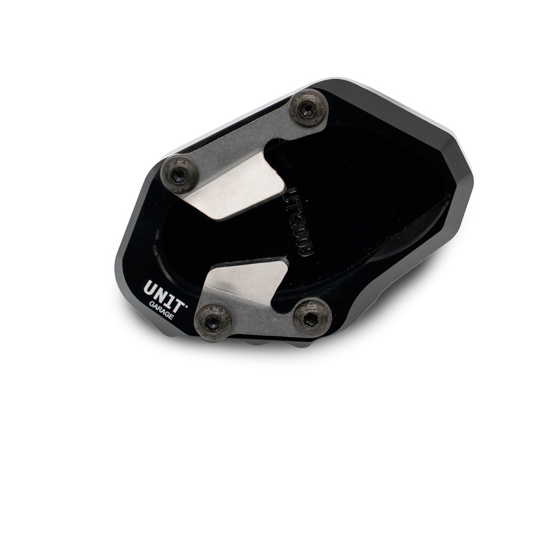 The supporting surface of the original side stand is quite poor. On a soft background or hot asphalt, this Ergal plate made from solid allows a secure support. Black anodized antioxidant with engraving and logo. Mounts in just a few minutes.