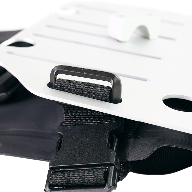Carrying system in aluminum with adjustable Hypalon front and Quick Release System.
