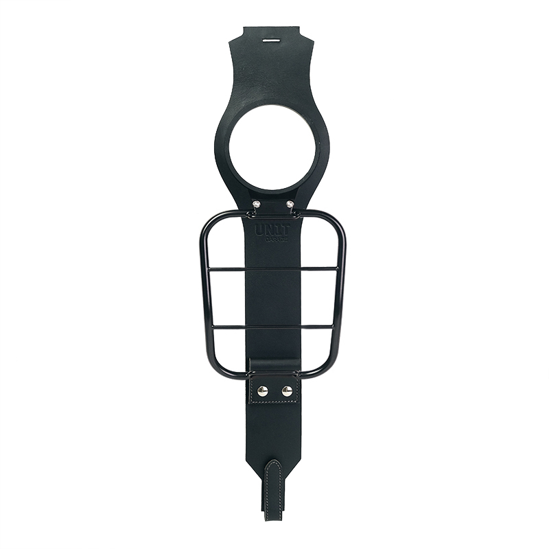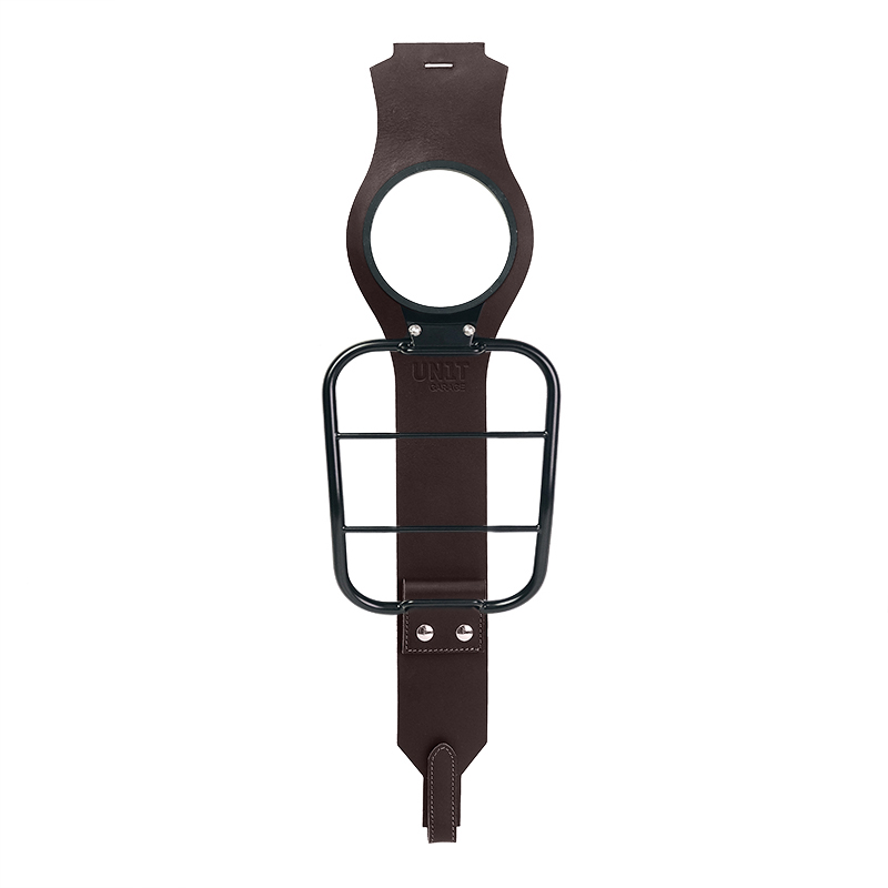 Tank strap made from full-grain leather, designed for mounting, with a CNC-machined flange.