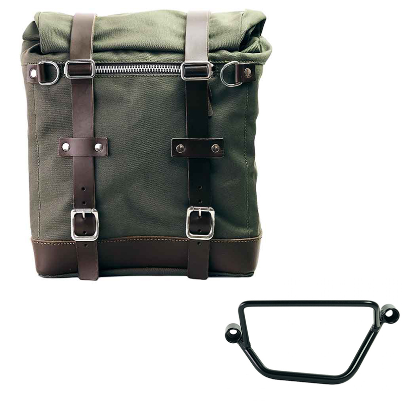 Scram side pannier, extendable from 22 to 30 liters handmade in Italy in sturdy waterproof cotton of the highest quality.