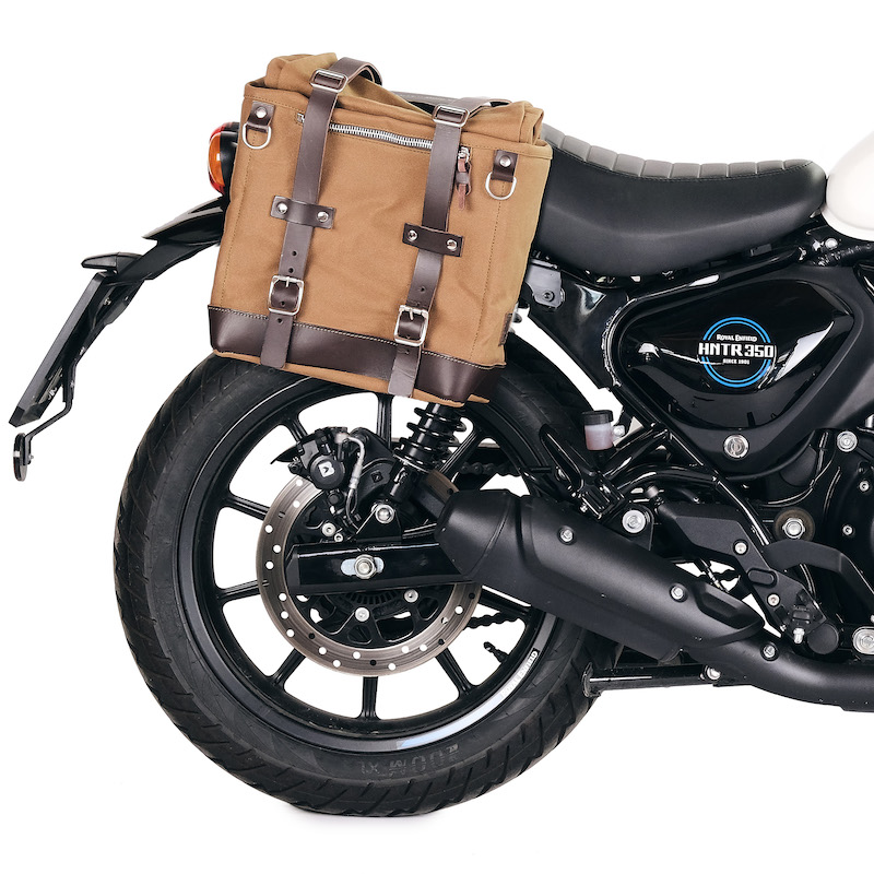 Designed on the Royal Enfield frame, it integrates perfectly with the rest of the bike and is made of steel with a matt black epoxy powder-coated finish. Ready to host our quick release system, beautiful and minimal even when the bag is not mounted. It can be used comfortably with the passenger on board.