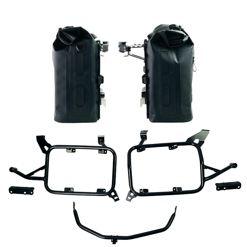 Two Khali side panniers 100% waterproof with aluminum backs + stainless steel quick release system with lock