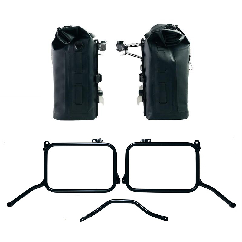Two Khali side panniers 100% waterproof with aluminum backs + stainless steel quick release system with lock
