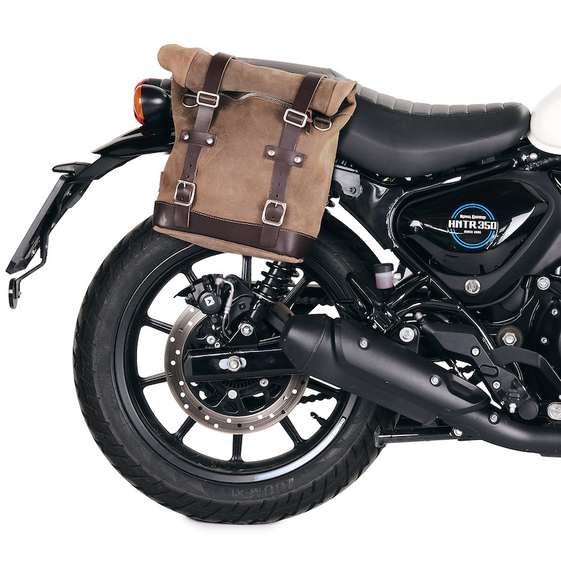 Designed on the Royal Enfield frame, it integrates perfectly with the rest of the bike and is made of steel with a matt black epoxy powder-coated finish. Ready to host our quick release system, beautiful and minimal even when the bag is not mounted. It can be used comfortably with the passenger on board.