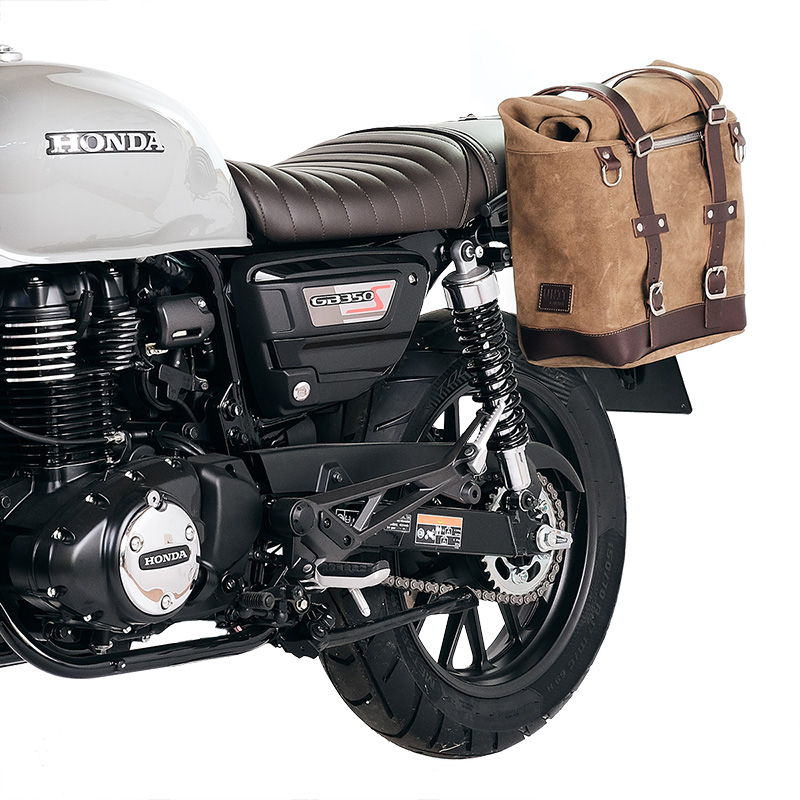 Designed on the Honda GB350S frame, it integrates perfectly with the rest of the bike. Ready to host our quick release system, beautiful and minimal even when the bag is not mounted. It can be used comfortably with the passenger on board.