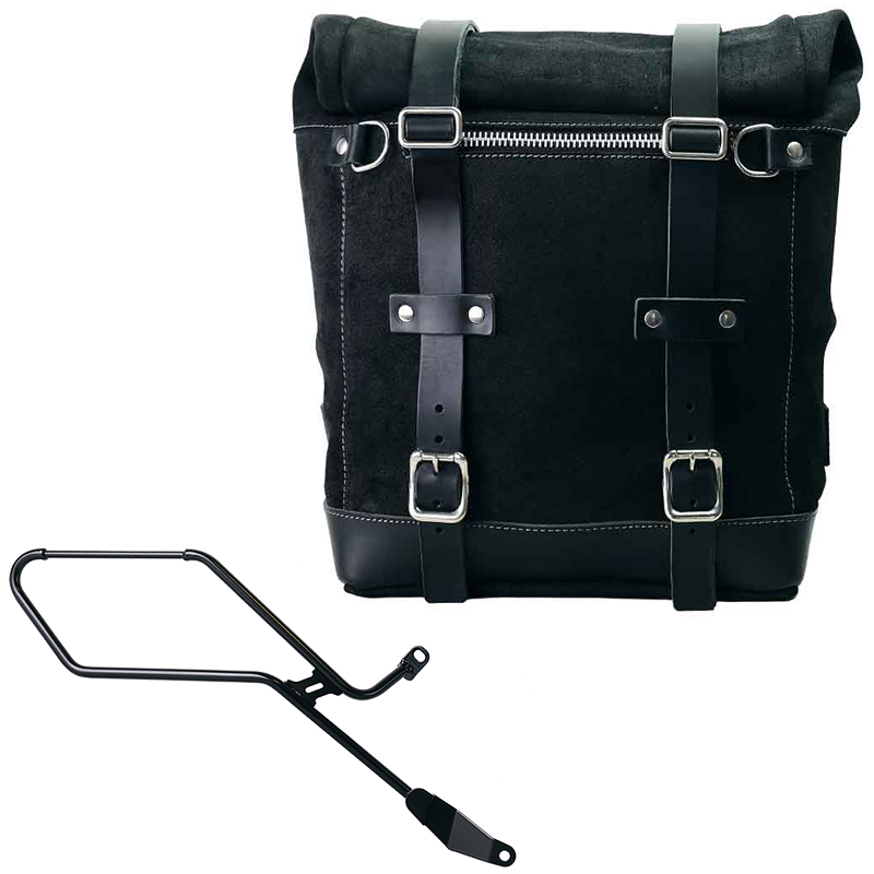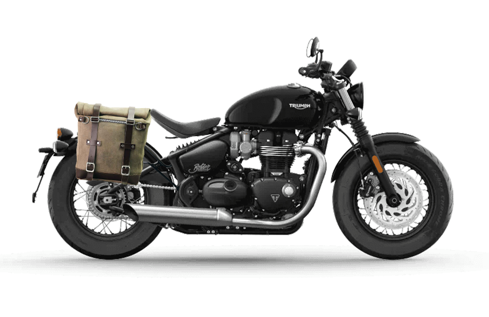 Waxed suede side pannier Scram 22L-30L + Right Frame Triumph Bonneville Bobber