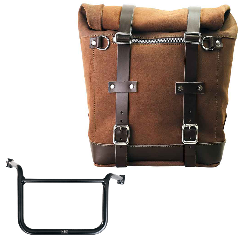 Derived from our classic U002 side pannier, but it is much larger and has a removable core in rigid material so the bag keeps its shape even when empty. With attention to the smallest details with 3 mm leather finishes, simple and pure like the materials with which it was built. It quickly attaches to our side pannier frame with the quick release system, already included and mounted on the back of the bag. The quick release is equipped with a lock for locking on the frame itself. It is big enough to fit a jet helmet inside, and is equipped with a large front pocket with zip accessible from the outside. To open it it is not necessary to remove the front buckles but just move them to the side, in a very fast and practical way. To protect and organize your luggage, we recommend using the 18L Khali light multipurpose bag inside.
