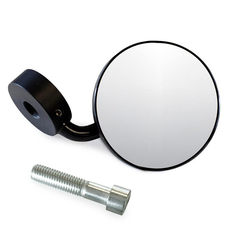 Black anodised aluminium mirror. Numerically controlled CNC machined, it is supplied individually and can be mounted on either the right or left side of the handlebar.