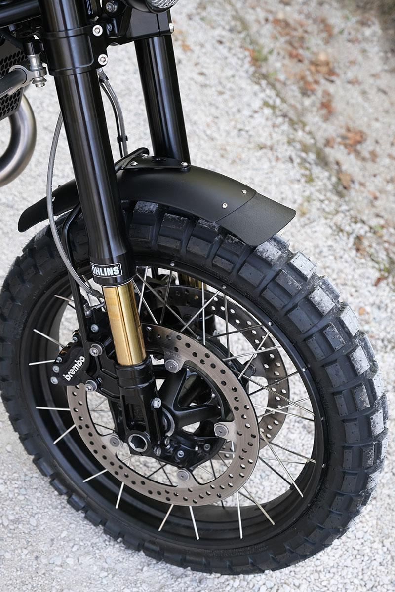 It replaces all the original front fender, in perfect "old school" style. It is equipped with a steel tube for fixing to the fork legs, with a matt black finish with epoxy powders. Complete with aluminum front mudguard with matt black finish.