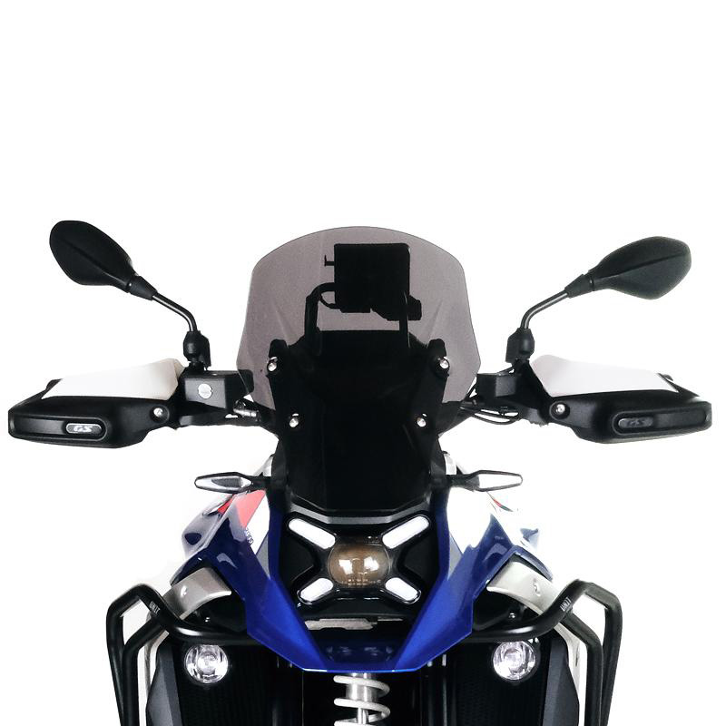 The windshield is an absolutely personal appendage and we have developed it in different shapes, sizes and transparencies, each suitable for different heights and expectations. The M screen (you can find the total measurements and the difference from the original one on the photos), adjusts like the original one in two positions, and offers optimal protection for every type of height by eliminating annoying turbulences, your GS will become even more ergonomic!