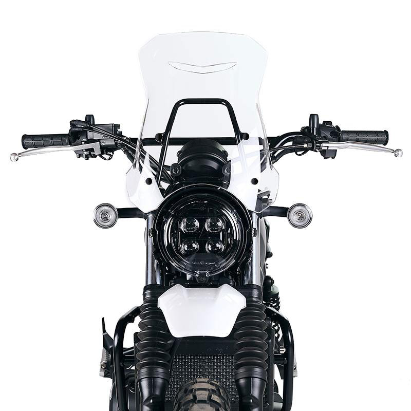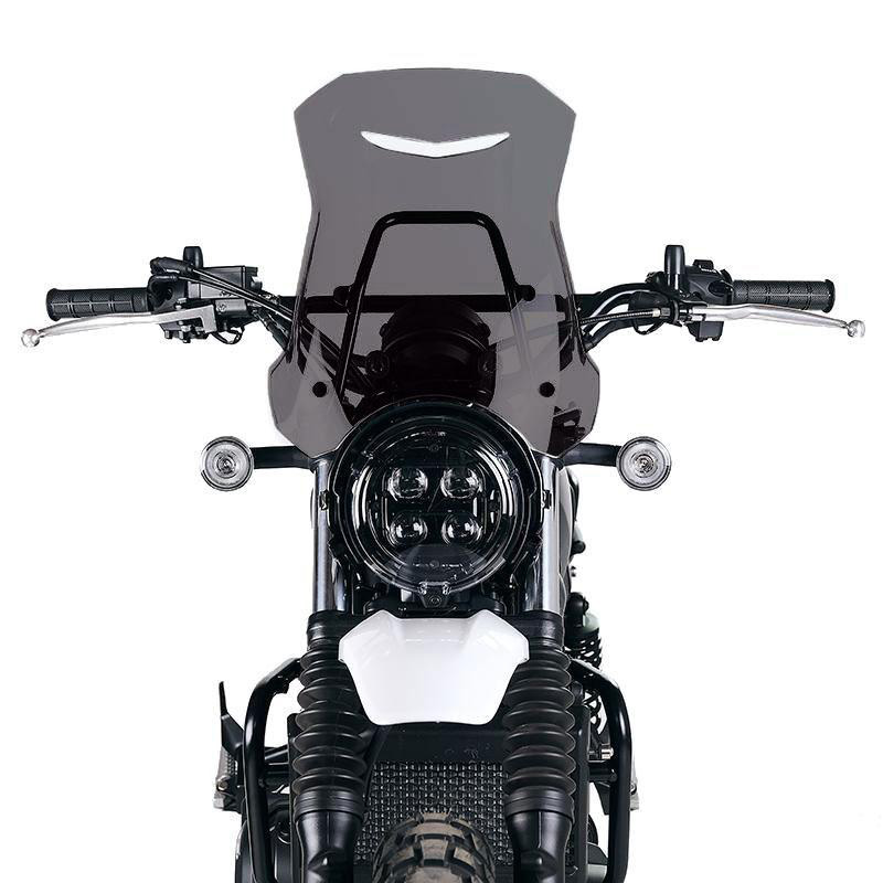 It mounts very easily and offers excellent aerodynamic protection. The front slit eliminates turbulence, and the support tube also acts as a GPS support (diameter 12 mm). Colors: Transparent, dark smoke, yellow NB: Optional code 3136 sticker.