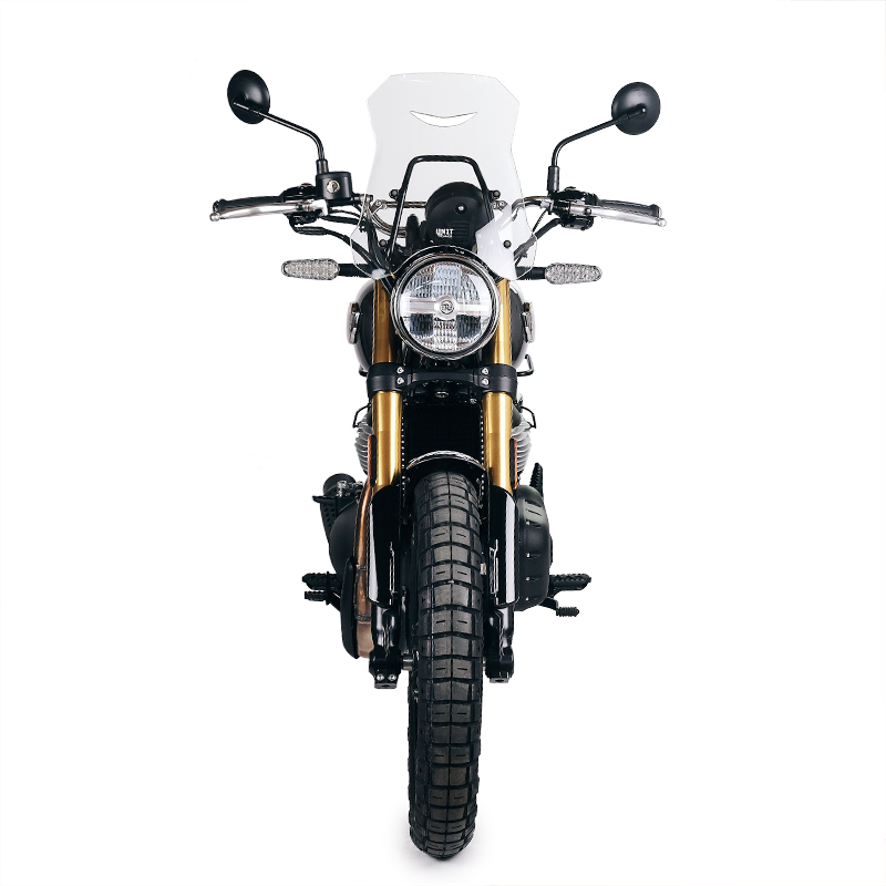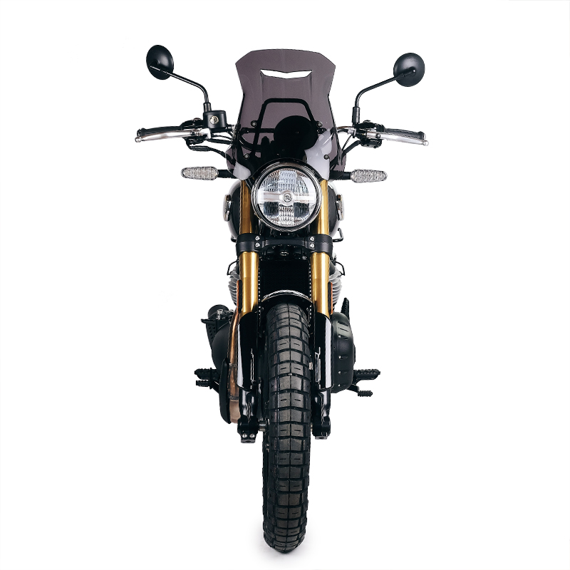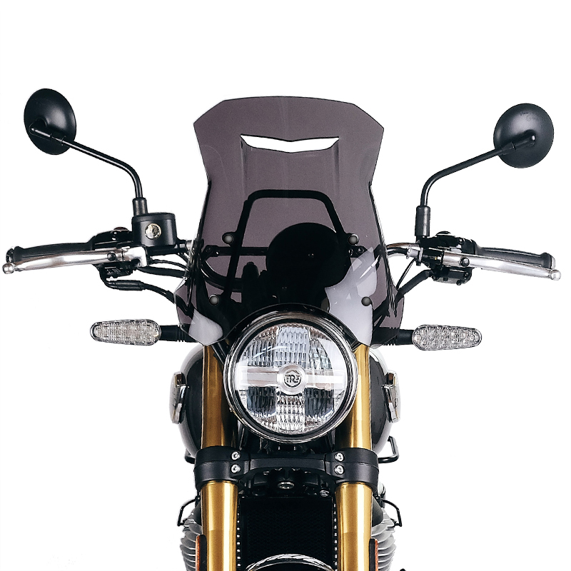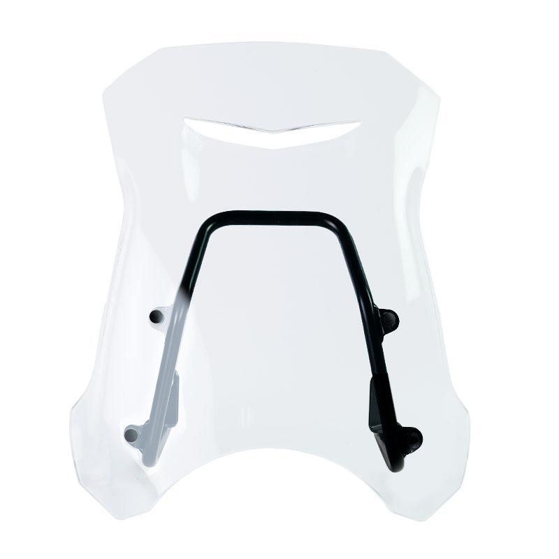 Complete with new bracket and screws, it is perfectly styled with the lines of the front. Made of 4 mm thick PMMA (Acrylic). It is very easy to mount and offers excellent aerodynamic protection. The front slit eliminates turbulence, and the support tube also acts as a GPS or cell phone holder.
