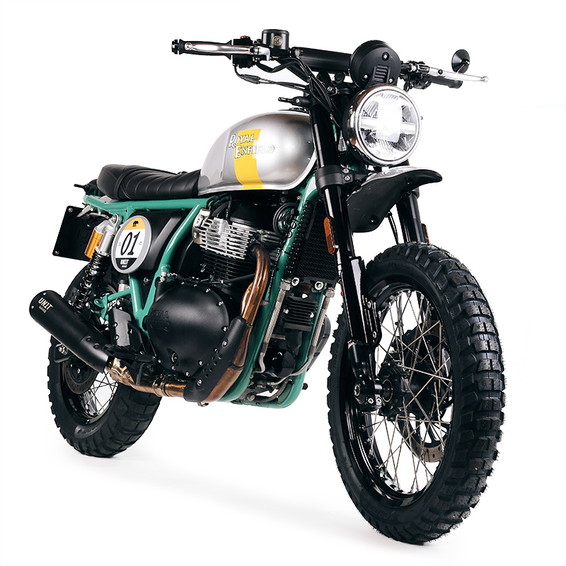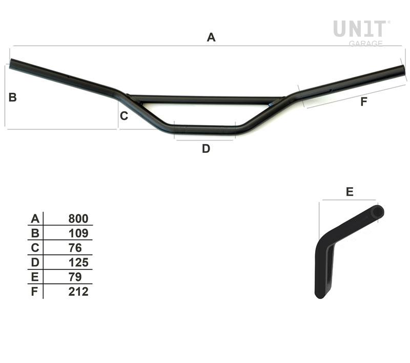 Steel handlebar designed specifically for the Royal Enfield Bear 650, fits over the original risers, all cables (throttle, brake, clutch and wiring) should not be replaced. It is equipped with holes for fixing the original control blocks and M6 threaded inserts for housing the counterweights.