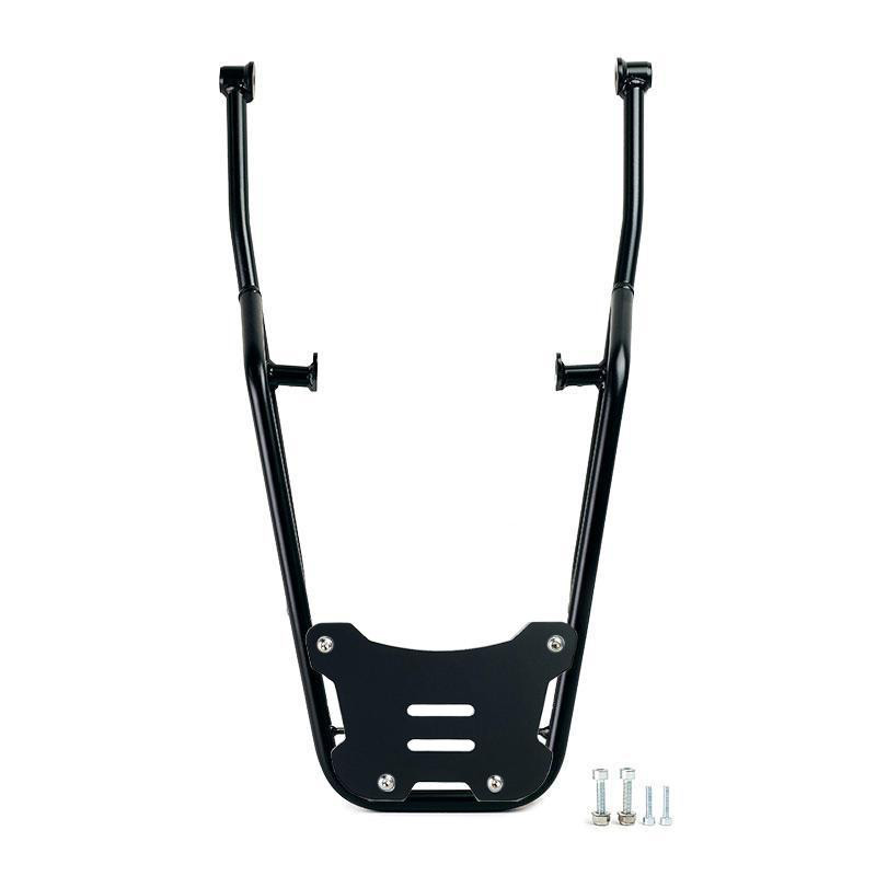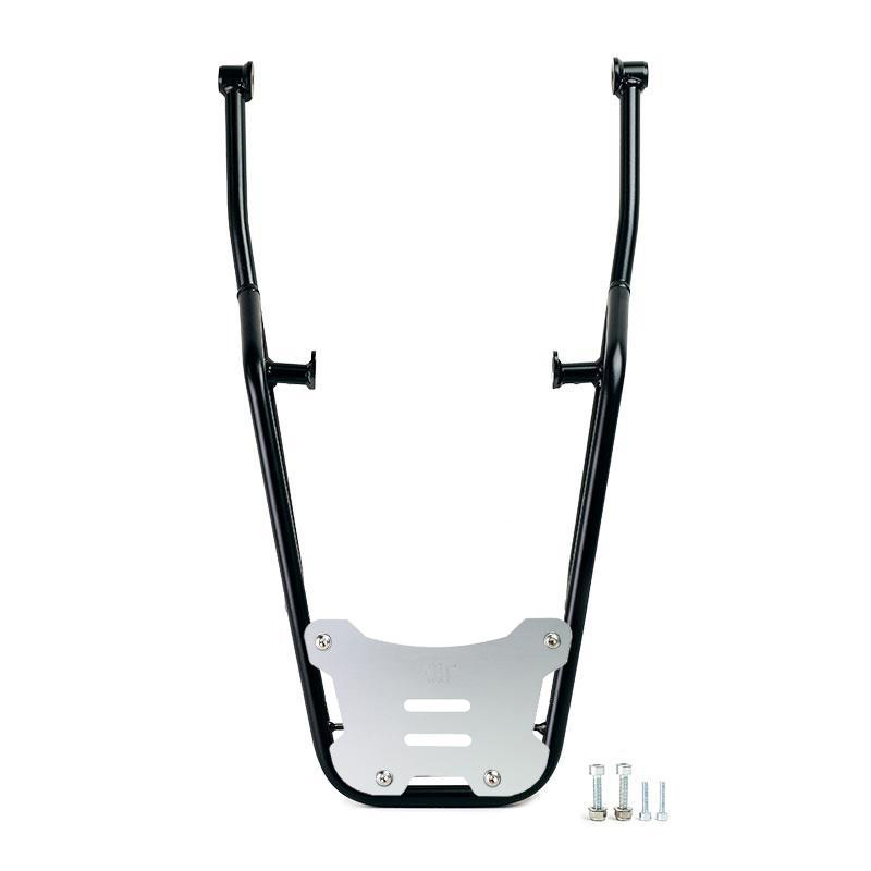 Luggage rack made of steel tube with matt black epoxy powder finish. Complete the rear and is equipped with handles for the passenger, it is fixed very simply on the original bike with the supplied screws. Sturdy and practical, it is provided on the support surface with 4 bushings for fixing the AL5 plate (available separately or already included in the Atlas top case code: ATL3).