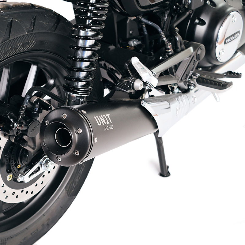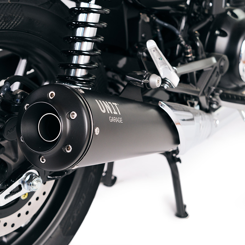 We wanted a special exhaust that was also homologated. Made with a matt black finish and a CNC-machined end cap.