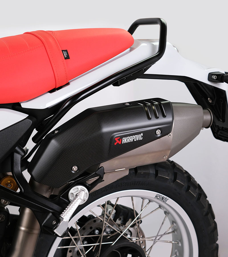 The partnership between Unit garage and Akrapovic has led to the creation of an exhaust system that combines Akrapovič technology, Unit garage design and aesthetics inspired by the BMW Dakar motorcycles of the 1980s.