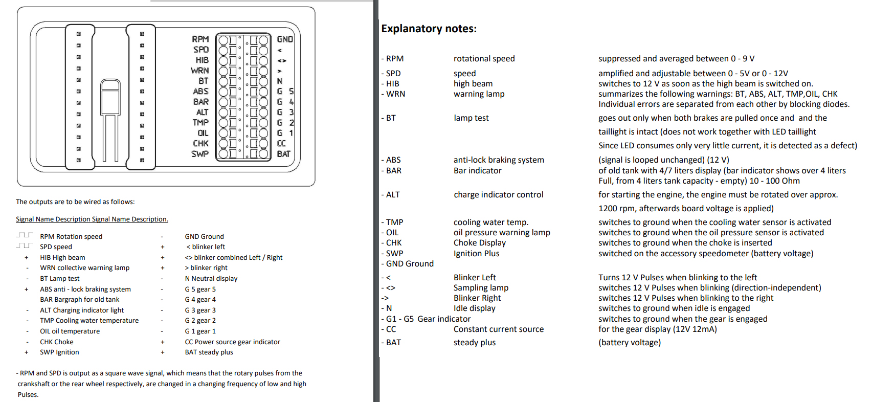 This electronic unit had been developed for those who wants to replace the original cockpit of their BMW K series with a different gauge: wires connection is completely stress-free without soldering any wire. No alterations to the wiring harness or modifications of the vehicle are required. Simply plug in and off you go!Quick and easy installation: no wiring modifications to the motorcycle electrical system are necessary. Just connect the pins of the original BMW wiring to the control unit and connect the control unit to the new instrument. The only thing you must check is, what kind of wiring harness plug your BMW K series is equipped with: a new wiring harness plug was introduced for certain years. This are of 2 types of plugs, one with round connector pins (one-piece black plug) and the other one with angular pins (two-part white plug): the pin assignment however remained unchanged.Compatible with almost all aftermarket electronic instruments.