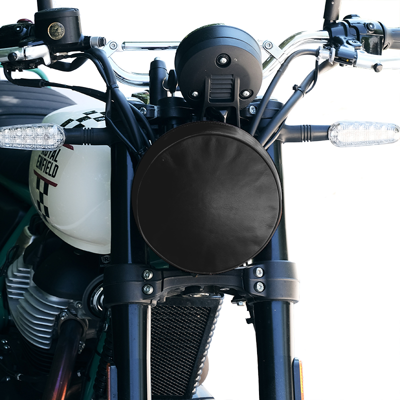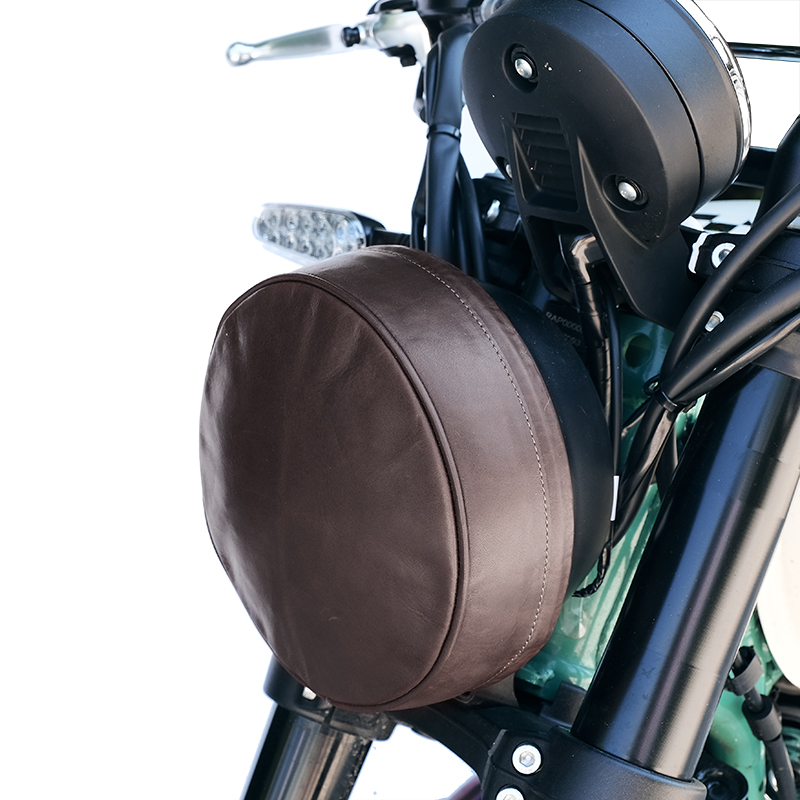 Made of genuine leather, it protects the headlight glass on off-road trips and gives your motorbike a fantastic vintage look!