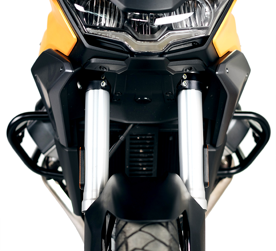 If you want to protect the engine of your Guzzi in the best possible way, this is the bar you need. With double side protection tubeit is very protective in the event of a fall and integrates perfectly with the frame of the Moto Guzzi Stelvio. Made of steel with 25 mm tube, thickness 2 mm treated with high-strength powder paint. Most maintenance work can be done without disassembling the bar. Very beautiful and elegant, they perfectly define the lines of the bike. They are supplied with everything you need, including mounting instructions. Integrated on the bars you will also find welded M6 threaded inserts for attaching additional lights (hole spacing mm20).