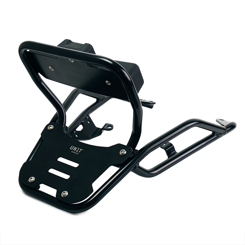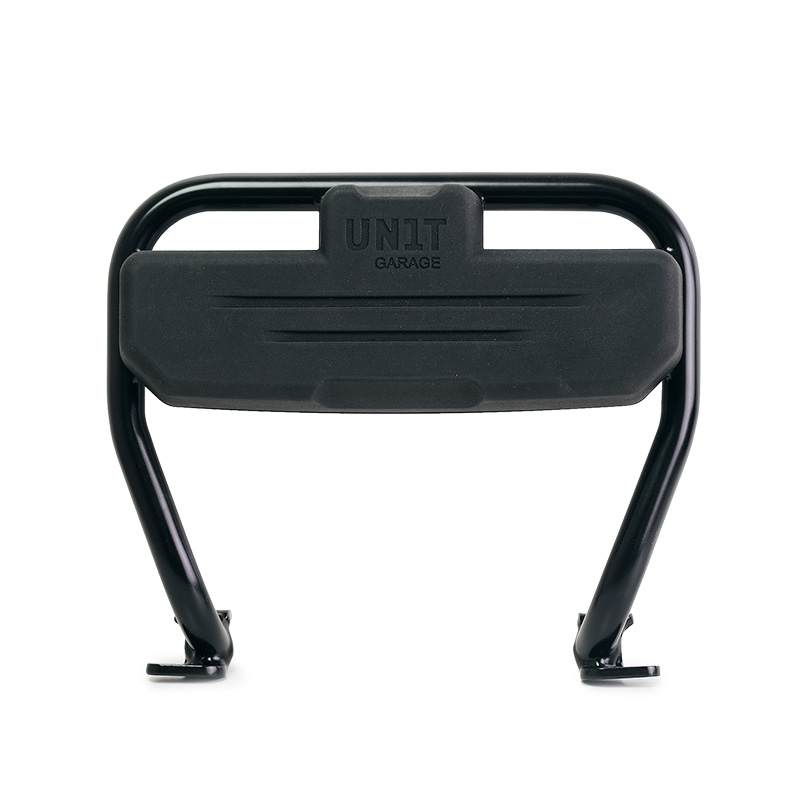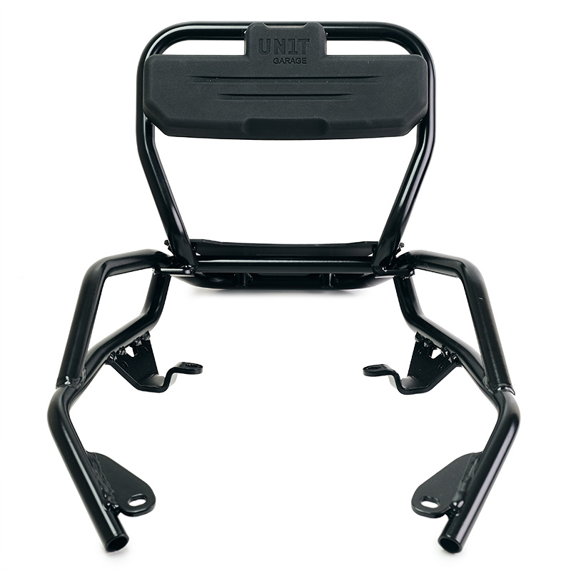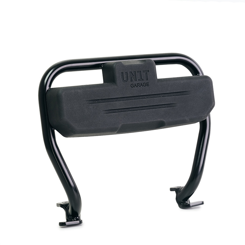 Backrest for Atlas top cases in black polyurethane, complete with fixing tube, designed for mounting on our luggage racks.