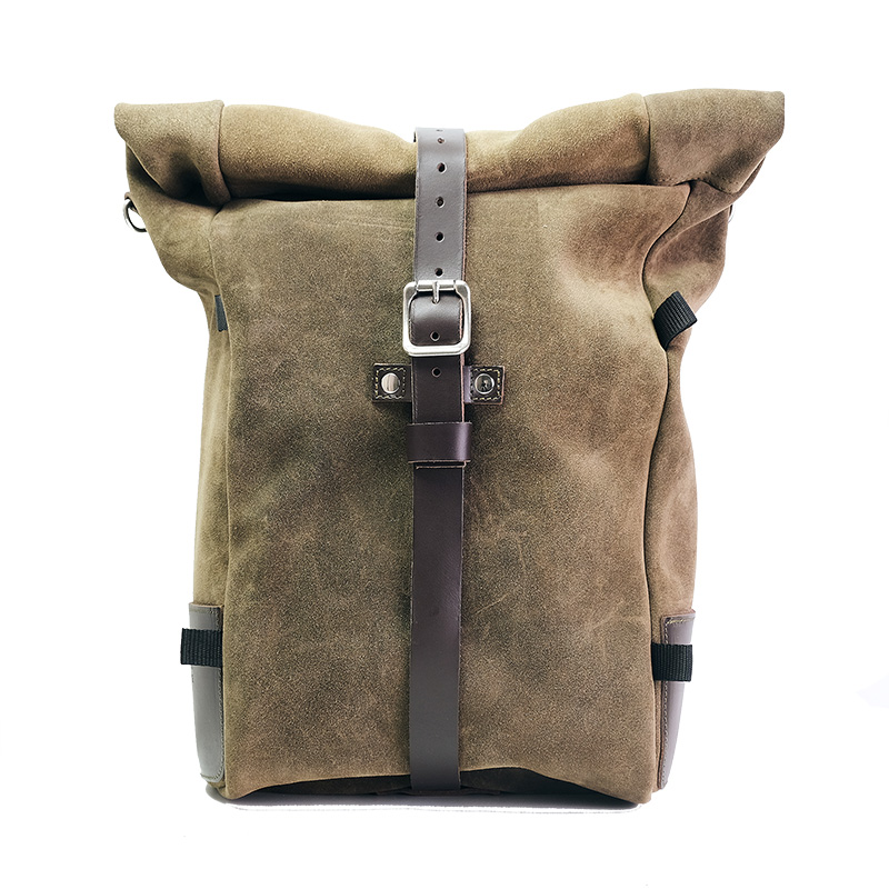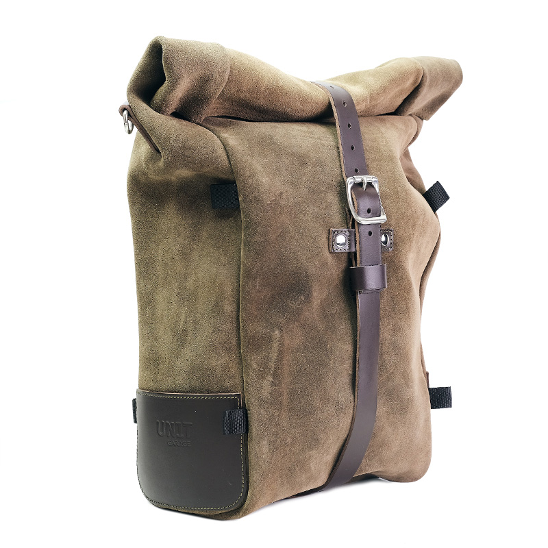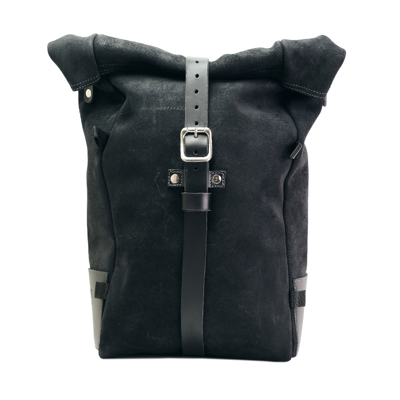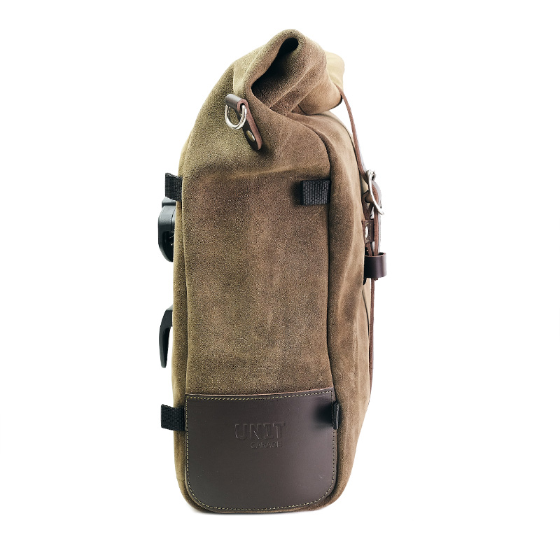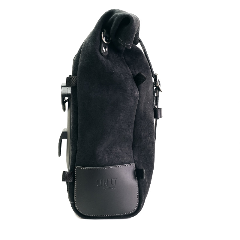Pure side bag, expandable from 10 to 14 litres, handmade in Italy from sturdy, top-quality waxed suede leather.