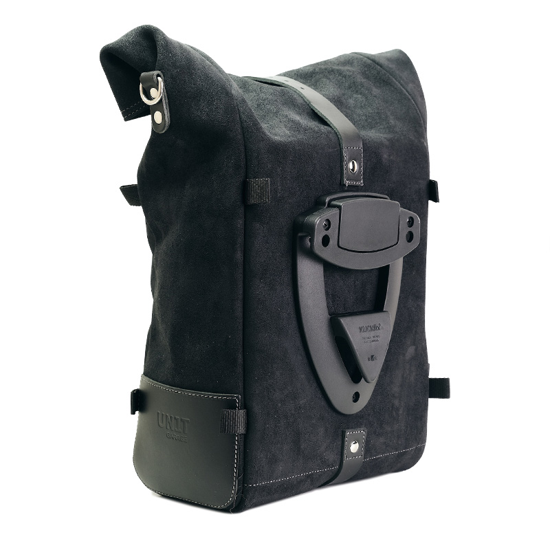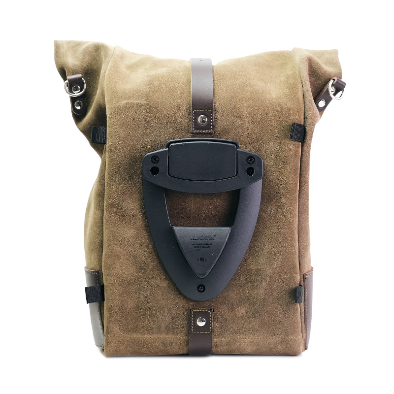 Meticulously crafted with 3 mm leather trim, it is as simple and pure as the materials used to make it. It attaches quickly to our bag frame with the quick-release system already included and mounted on the back of the bag, which is equipped with a lock for securing it to the frame.