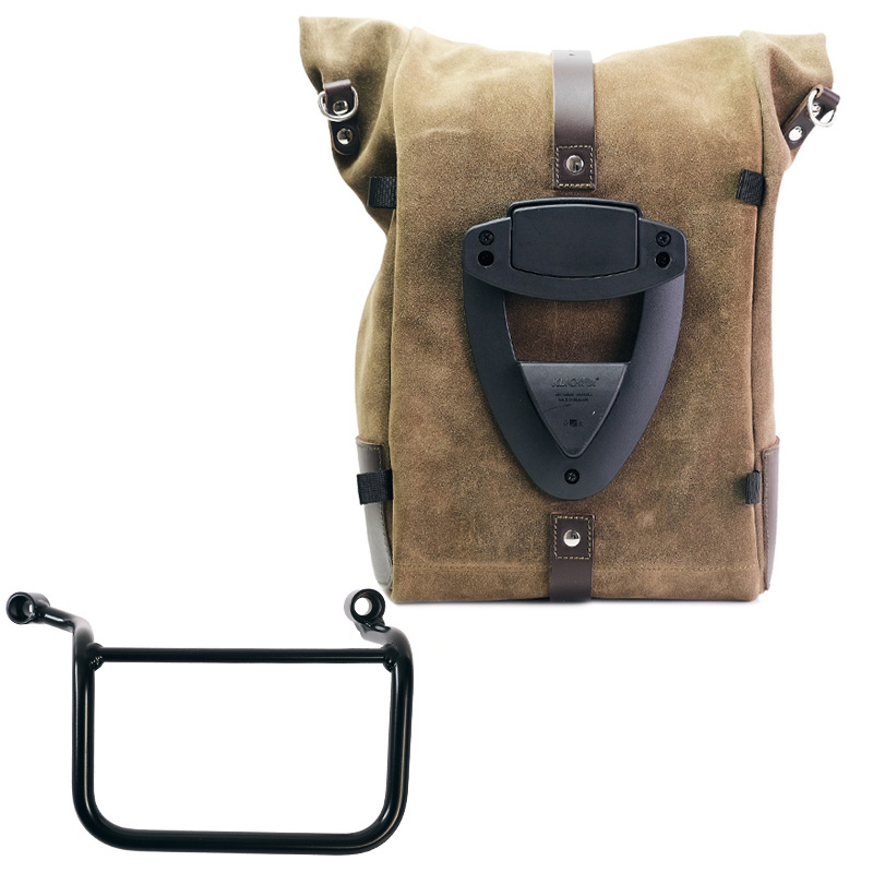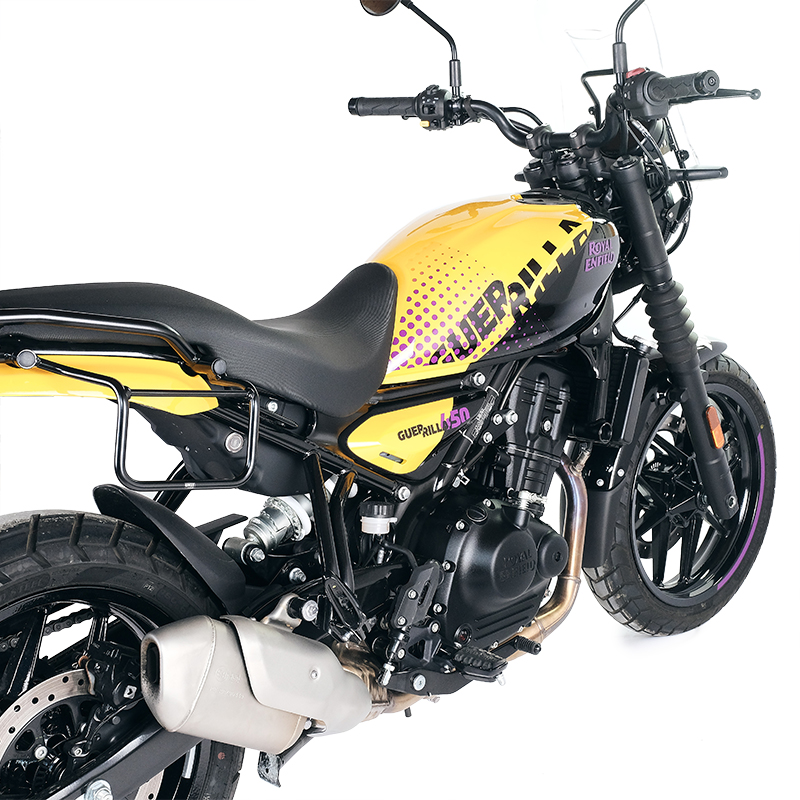 Designed on the Royal Enfield frame, it integrates perfectly with the rest of the bike and is made of steel with a matt black epoxy powder-coated finish. Ready to host our quick release system, beautiful and minimal even when the bag is not mounted. It can be used comfortably with the passenger on board and is compatible with our luggage racks as well as the original ones.