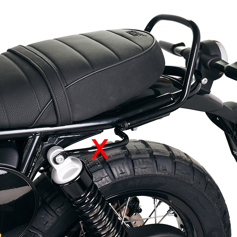 Royal Enfield Bear 650, it integrates perfectly with the rest of the bike. Ready to host our quick-attach system, beautiful and minimal even when the bag is not mounted. Mounts easily. It can be used comfortably even with the passenger on board.
